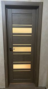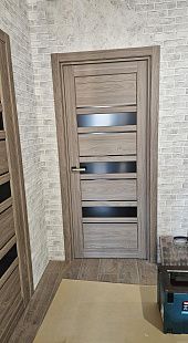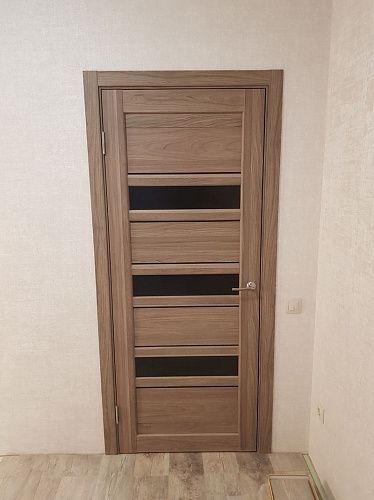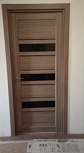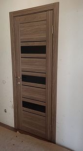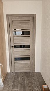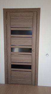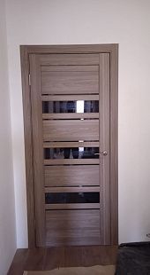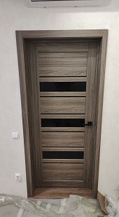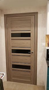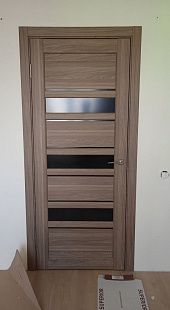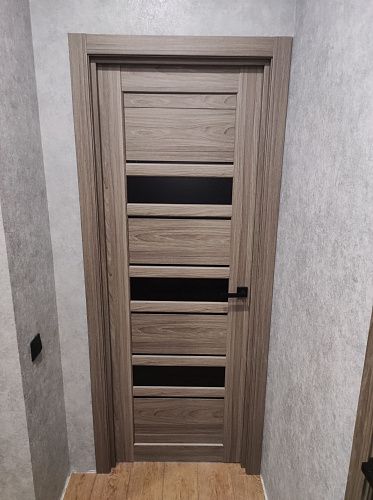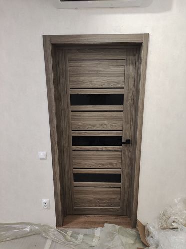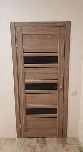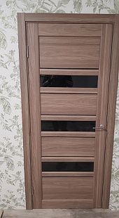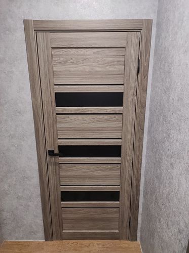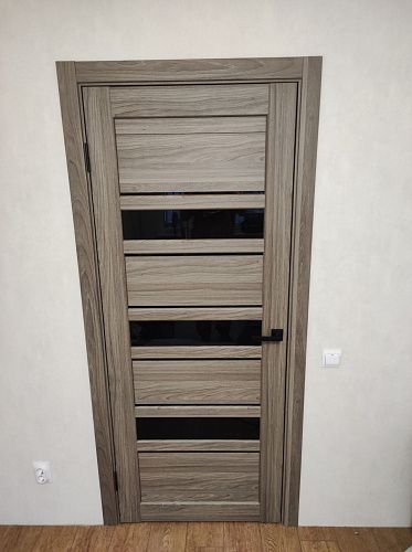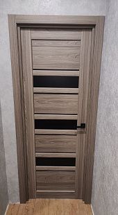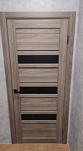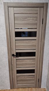 Дверь ПО Queen X3 Дуб тортора черное стекло из Экошпона COVERFLEX (Двери Нева) в Киришах с установкой и доставкой